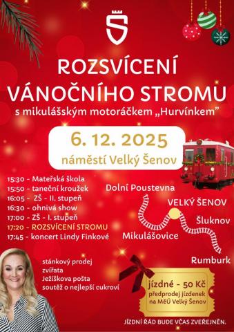Město Velký ŠenovVás srdečně zvena Rozsvícení vánočního stromu,v sobotu 06.12.2025 od 15:30 hodin